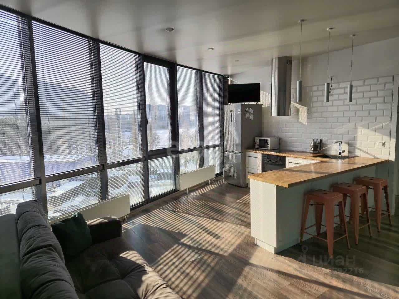 Квартира выполнена по дизайн-проекту с панорамным остеклением, общая площадь 50.1 кв.м, просторная кухня-гостинная 24 кв.м., спальня 11 кв.м.
