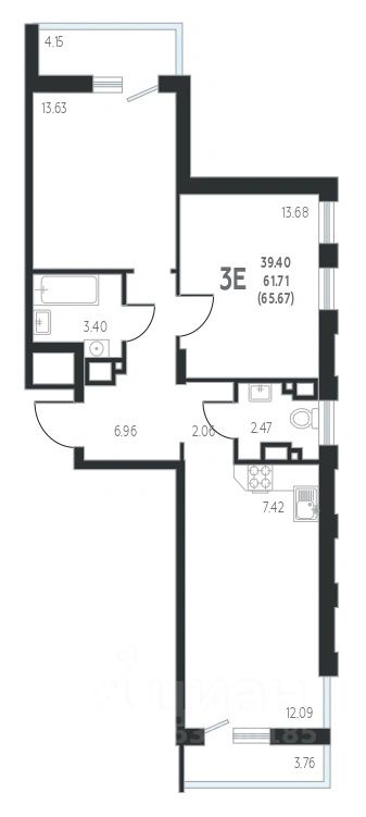 Продаётся 2-комнатная квартира в строящемся доме (Дом 1), срок сдачи: IV-кв. 2027, общей площадью 65.67 кв.м., на 10 этаже. Новый жилой комплекс "Экипаж" от Специализированного застройщика "КВАРТАЛ" расположен по адресу: г. Воронеж, по ул. Ленинградская.