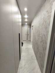 - в прихожей, санузле, кладовой, кухне и балконе на полу керамогранит с электрическим подогревом;