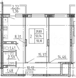 Функциональная планировка: раздельный санузел, есть кладовая, кухня с выходом на лоджию, комнаты 15,4 и 14,5 кв.м.