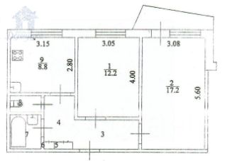 Окна ПВХ, выход на балкон из комнаты. Санузел раздельный.