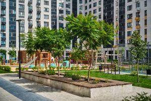 Во дворах есть все условия для комфортного отдыха: детские площадки с качелями и горками, спортивная площадка, пространство для занятия на тренажерах, беседки, дорожки для катания на роликах и самокатах.