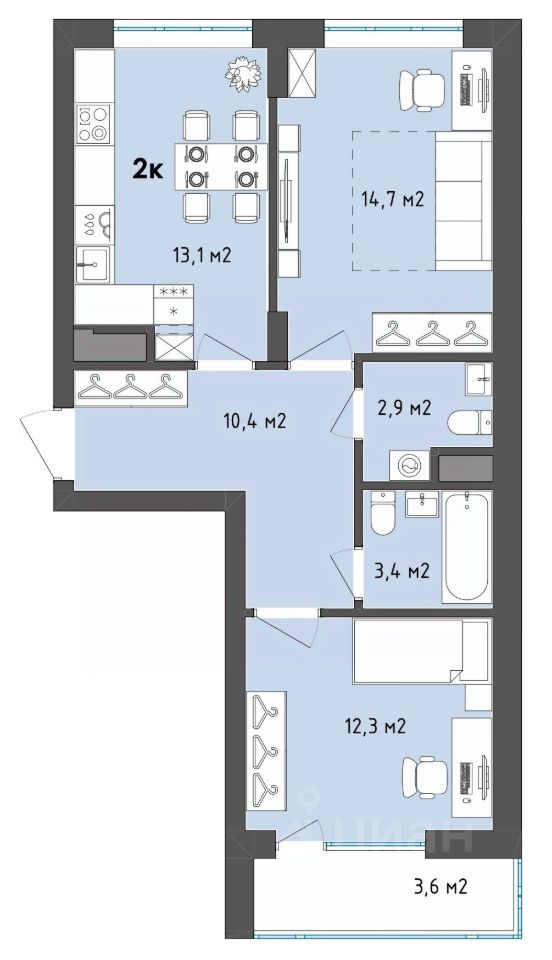 Площадь кухни13,1 м²