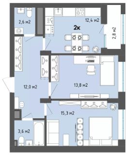 Площадь кухни12,4 м²