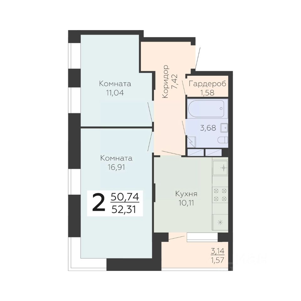 Общая площадь52,31 м²
