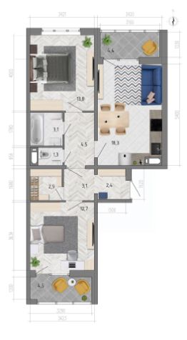 Продаётся 2-комнатная квартира в строящемся доме (Позиция 29, этап 3), срок сдачи: III-кв. 2026, общей площадью 67 кв.м., на 1 этаже. Жилой комплекс "Микрорайон Боровое" - представляет собой комплексную застройку, возводимую в экологически чистой зоне Железнодорожного района Воронежа. Комплекс расположен на пересечении улиц Федора Тютчева и Сельской. Жилые дома в "Боровом" строят высотой от 9 до 25 этажей. Каркасы домов возводят из монолитного железобетона, материал стен блоки. Крупномасштабный жилой комплекс со своей развитой инфраструктурой рядом с трассой "Дон", в отдалении от промышленных предприятий, роскошными пейзажами соснового бора, березовой рощи и древней Троицкой церкви выбрали для комфортной жизни уже сотни воронежцев.