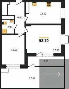 Квартира: 2 к 58,70 кв.м., 2 этаж в комплексе Ключи CLUB, 1 очередь, корп.1, сдача: 2кв. , этажей: 15, адрес Воронеж г., Содружества бул., д. 5, Застройщик: Новый код.