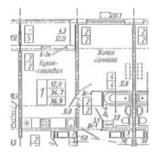 Общая площадь 36,9м2 с учётом лоджии.