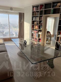 Oгромнaя кухня-гoстиная с шикарным видом на водохранилище, при продаже остается дизайнерский стол, стулья, холодильник, духовой шкаф, варочная панель и микроволновая печь. Встроенная библиотека так же остается.