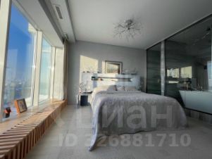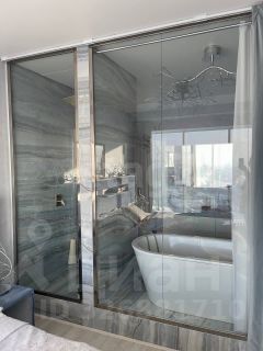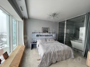 В спальне также панорамное остекление, а-за стеклянной перегородкой изюминка - белоснежна ванна! В спальне остается кровать и тумба. Мебель в детской комнате забирается полностью. Между двумя спальнями расположена гардеробная комната. Подоконники и стеновая панель из ясеня. В квартире расположены два санузла. В одном установлена душевая кабина и писсуар, а в другом ванна, большая душевая и биде. Установлена дорогостоящая, качественная канальная система кондиционирования.