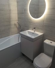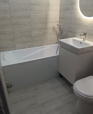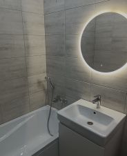 Установлена новая акриловая ванна от немецкого премиального брэнда am pm. Кран премиального брэнда Jacob. Подписная тумба с доводчиками.