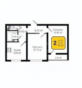 57,3 м²