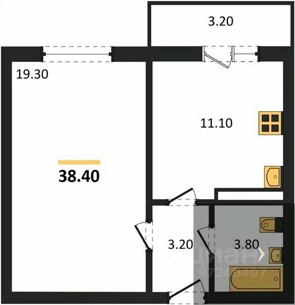 Квартира: 1 к 38,40 кв.м., 2 этаж в комплексе Счастье, 2 очередь, корп.3, сдача: 1кв. , этажей: 7, адрес Ямное село, Проселочная ул., , Застройщик: ВЫБОР.