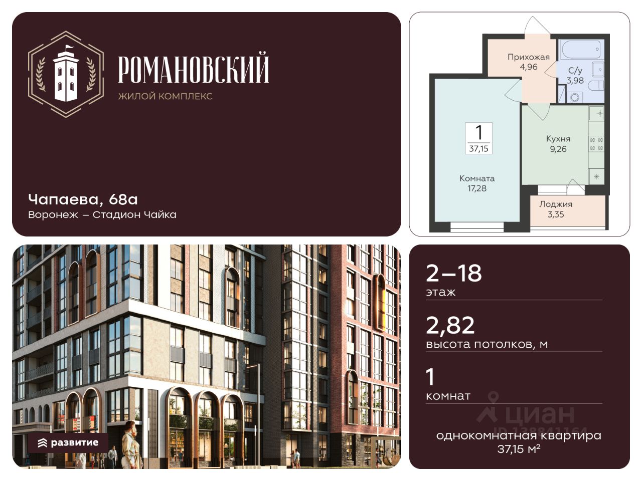 Жилой комплекс "Романовский" - проект класса "комфорт плюс", расположенный на улице Чапаева, в месте, где история встречается с современностью. Соседство с объектом культурного наследия "Водонапорная башня Романовской слободы" делает жилой комплекс воплощением статусности, комфорта и умиротворения. Выбирайте спокойную размеренную жизнь в шумном мегаполисе, не отказываясь от привычных занятий и увлечений. Прогулочный бульвар, стадион для спорта на свежем воздухе, супермаркеты, креативный кластер здесь есть всё, что нужно для полноценной наполненной жизни. Территория двора продумана так, чтобы каждый нашёл здесь занятие по душе. Игровые площадки с безопасным покрытием зонированы по возрасту и создают все условия для игр и общения детей. Современная спортивная площадка с воркаут-зоной поможет поддерживать себя в форме адептам спортивного образа жизни. Планировочные решения квартир спроектированы с учётом современных тенденций и удовлетворяют все потребности будущих жителей. Пространство каждой квартиры продумано до мелочей: • эргономичные студии с зонами для хранения в прихожей; • классические однокомнатные квартиры с гардеробными и большими кухнями; • двухкомнатные квартиры евро-формата с мастер-спальнями гардеробными комнатами; • просторные трёх- и четырёхкомнатные квартиры классического и евро-формата с гостиными, гардеробными и двумя санузлами. В холлах первых этажей спроектированы помещения для колясок и комнаты-лапомойки для ваших питомцев. На каждом этаже ЖК "Романовский" мы предусмотрели кладовые комнаты для хранения сезонных вещей. В проекте будет построен подземный паркинг и наземная парковка на прилегающей территории, рассчитанная на 258 мест. Несмотря на то, что парковка находится в непосредственной близости к подъездам, она не нарушает концепцию двора без машин. Ввод в эксплуатацию запланирован в 4 квартале 2027 года согласно проектной документации. Покупая квартиру в ЖК "Романовский" от ГК Развитие, вы получаете дополнительно БЕСПЛАТНО: - помощь в одобрении и получении ипотеки с минимальной процентной ставкой. - ПОЛНОЕ ЮРИДИЧЕСКОЕ СОПРОВОЖДЕНИЕ сделки купли-продажи - Помощь в реализации МАТЕРИНСКОГО капитала. - Консультация и показ объекта в любое УДОБНОЕ ВРЕМЯ - Помощь в ПОДГОТОВКЕ И СБОРЕ ВСЕХ ДОКУМЕНТОВ, необходимых для покупки.