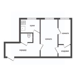 Планировка включает две комнаты, одна из которых проходная, но при необходимости можно сделать перепланировку и получить две изолированные комнаты. Общая площадь позволяет организовать пространство с учетом личных потребностей. Район с развитой инфраструктурой: в шаговой доступности остановка общественного транспорта, магазины "Магнит" и "Велдберис", почта, детский сад, ясли и лицей.