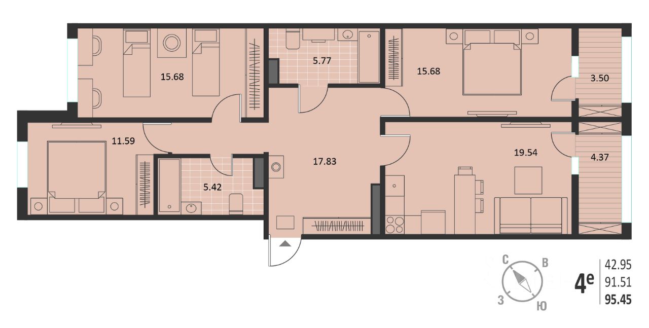 Общая площадь95,45 м²