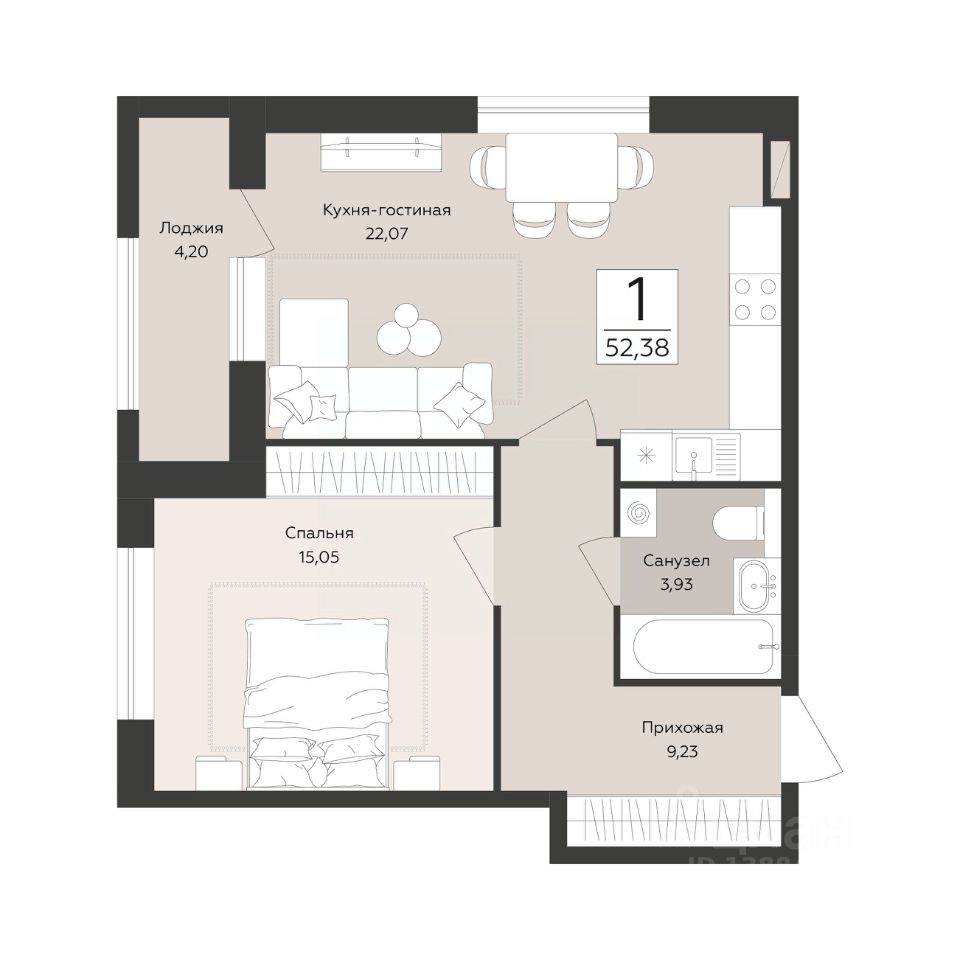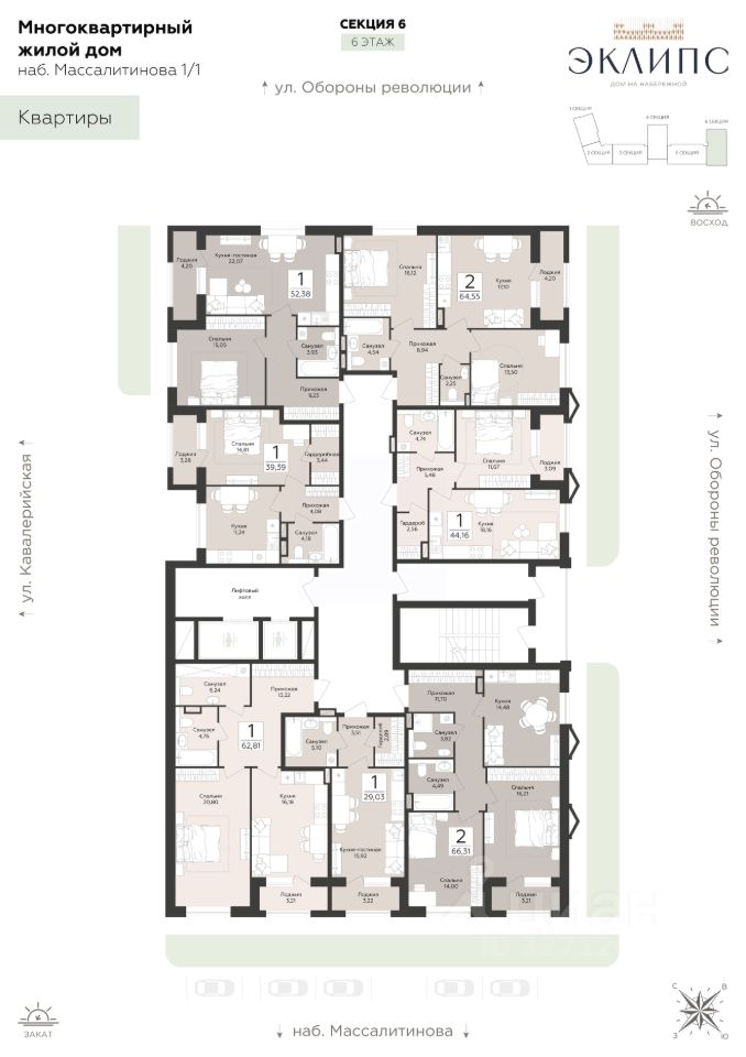 Продаётся 1-комнатная квартира в строящемся доме (Эклипс), срок сдачи: III-кв. 2030, общей площадью 52.38 кв.м., на 6 этаже. Новый жилой комплекс от группы компаний "Развитие" расположен по адресу: г. Воронеж, набережная Массалитинова.