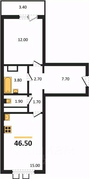 Общая площадь46,5 м²