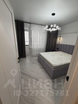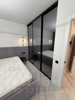 По планировке квартира представляет собой евро-двушку: есть одна изолированная спальня, в которой расположена кровать и трехстворчатый вместительный шкаф, а. а также просторная кухня-гостиная.