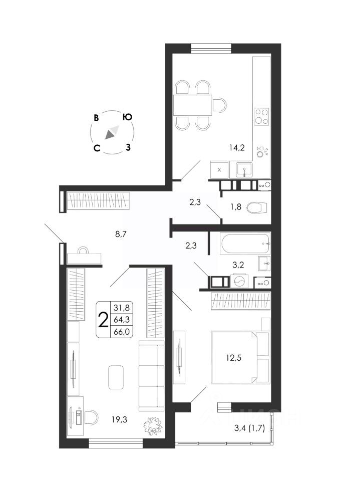 Жилая площадь31,8 м²