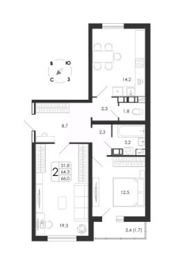 Общая площадь66 м²
