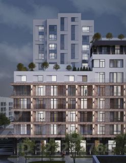 - Дом с оригинальной архитектурой и строгим характером композиционно состоит из четырех секций переменной этажности от 5 до 12 этажей.
