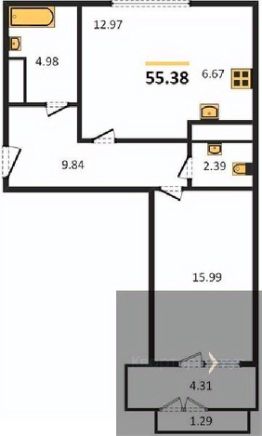 Квартира: 1 к 55,38 кв.м., 2 этаж в комплексе PROMETHEUS, 1 очередь, корп.1, сдача: 2кв. , этажей: 12, адрес Воронеж г., Революции 1905 года ул., д. 34, Застройщик: ВЫБОР.