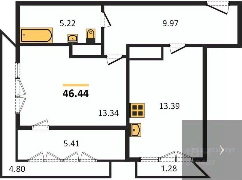 Квартира: 1 к 46,44 кв.м., 2 этаж в комплексе PROMETHEUS, 1 очередь, корп.1, сдача: 2кв. , этажей: 12, адрес Воронеж г., Революции 1905 года ул., д. 34, Застройщик: ВЫБОР.