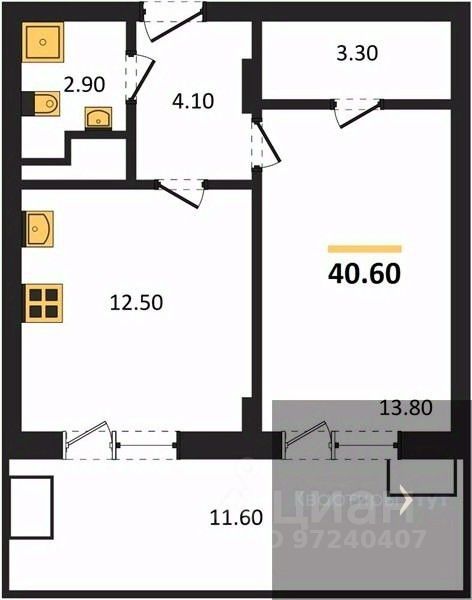 Квартира: 1 к 40,60 кв.м., 14 этаж в комплексе Ключи CLUB, 2 очередь, корп.2, сдача: 4кв. , этажей: 14, адрес Воронеж г., Остужева ул., д. 52/5, Застройщик: Новый код.