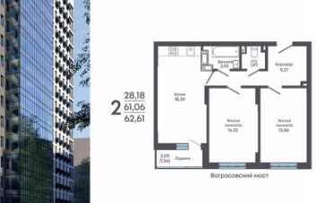 Продаётся 2-комнатная квартира в строящемся доме (Дом 2), срок сдачи: II-кв. 2029, общей площадью 62.61 кв.м., на 14 этаже. Жилой комплекс "Алые паруса" представляет собой 19-этажный жилой дом на улице Мопра, 16 вблизи парка "Алые паруса".