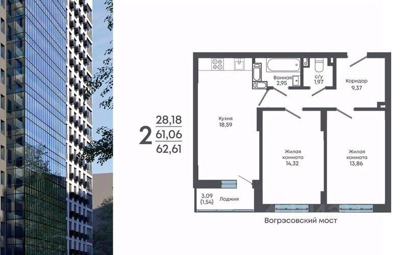Продаётся 2-комнатная квартира в строящемся доме (Дом 2), срок сдачи: II-кв. 2029, общей площадью 62.61 кв.м., на 12 этаже. Жилой комплекс "Алые паруса" представляет собой 19-этажный жилой дом на улице Мопра, 16 вблизи парка "Алые паруса".