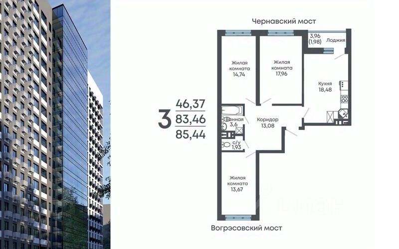 Продаётся 3-комнатная квартира в строящемся доме (Дом 2), срок сдачи: II-кв. 2029, общей площадью 85.44 кв.м., на 13 этаже. Жилой комплекс "Алые паруса" представляет собой 19-этажный жилой дом на улице Мопра, 16 вблизи парка "Алые паруса".