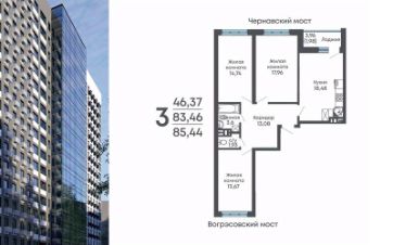 Продаётся 3-комнатная квартира в строящемся доме (Дом 2), срок сдачи: II-кв. 2029, общей площадью 85.44 кв.м., на 15 этаже. Жилой комплекс "Алые паруса" представляет собой 19-этажный жилой дом на улице Мопра, 16 вблизи парка "Алые паруса".