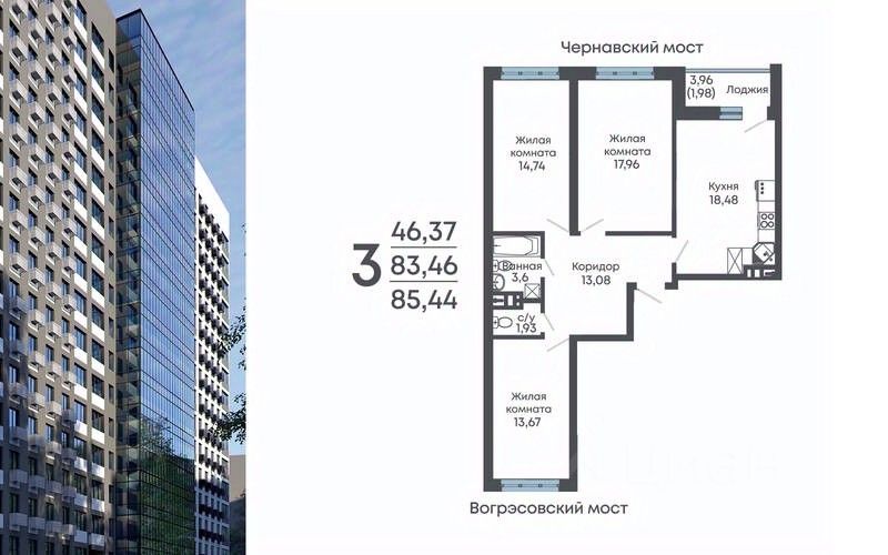 Продаётся 3-комнатная квартира в строящемся доме (Дом 2), срок сдачи: II-кв. 2029, общей площадью 85.44 кв.м., на 12 этаже. Жилой комплекс "Алые паруса" представляет собой 19-этажный жилой дом на улице Мопра, 16 вблизи парка "Алые паруса".