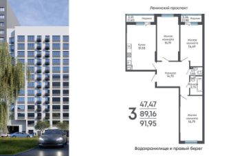 Продаётся 3-комнатная квартира в строящемся доме (Дом 2), срок сдачи: II-кв. 2029, общей площадью 91.95 кв.м., на 12 этаже. Жилой комплекс "Алые паруса" представляет собой 19-этажный жилой дом на улице Мопра, 16 вблизи парка "Алые паруса".