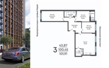Продаётся 3-комнатная квартира в строящемся доме (Дом 2), срок сдачи: II-кв. 2029, общей площадью 101.91 кв.м., на 10 этаже. Жилой комплекс "Алые паруса" представляет собой 19-этажный жилой дом на улице Мопра, 16 вблизи парка "Алые паруса".