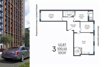 Продаётся 3-комнатная квартира в строящемся доме (Дом 2), срок сдачи: II-кв. 2029, общей площадью 101.91 кв.м., на 3 этаже. Жилой комплекс "Алые паруса" представляет собой 19-этажный жилой дом на улице Мопра, 16 вблизи парка "Алые паруса".