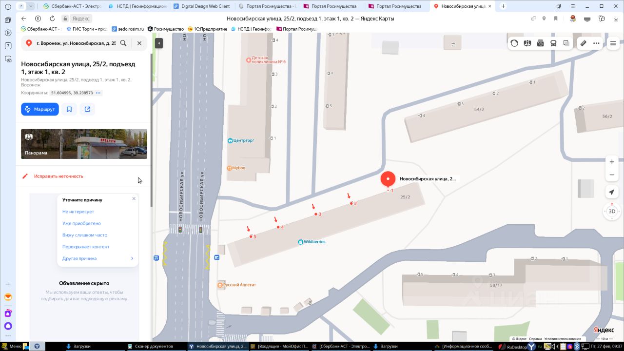 Лот 25 (повторные торги). Квартира площадью 31 кв. м, кадастровый номер 36:34:0306086:5859, местонахождение: г. Воронеж, ул. Новосибирская, д. 25, корп. 2, кв. 2. Собственник - ООО "ПРООКС".