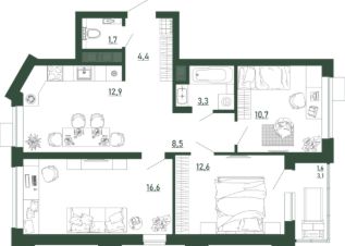 Подземный паркинг на -1 этаже вместимостью на 114 машино-места, в том числе семейные парковки на два автомобиля освобождает двор от машин — там гораздо приятнее гулять с детьми или заниматься спортом. Жители смогут выходить к своему автомобилю в теплый паркинг прямо из лифта — нет беспокойства из-за погодных условий или за сохранность транспортного средства. Ваши гости тоже не останутся без парковки — на придомовой территории организовано - 131 место и вне придомовой территории - 213 мест.