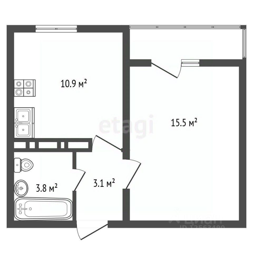 Объект характеризуется выгодным расположением и качественной планировкой: изолированная комната, просторная кухня 10.9 м², совмещенный санузел и балкон.