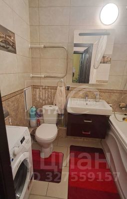 В просторном санузле установлена современная сантехника, имеется стиральная машина.