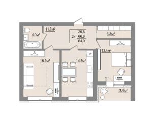 Продаётся 2-комнатная квартира в строящемся доме (Дом 1), срок сдачи: I-кв. 2027, общей площадью 64.9 кв.м., на 3 этаже. Новый жилой комплекс "Микрорайон Благодатный" от Специализированного застройщика "ВИТ-СТРОЙ" расположен по адресу: Воронежская обл., с. Ямное, по ул. Графа Орлова.