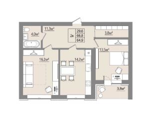 Продаётся 2-комнатная квартира в строящемся доме (Дом 1), срок сдачи: I-кв. 2027, общей площадью 64.9 кв.м., на 4 этаже. Новый жилой комплекс "Микрорайон Благодатный" от Специализированного застройщика "ВИТ-СТРОЙ" расположен по адресу: Воронежская обл., с. Ямное, по ул. Графа Орлова.