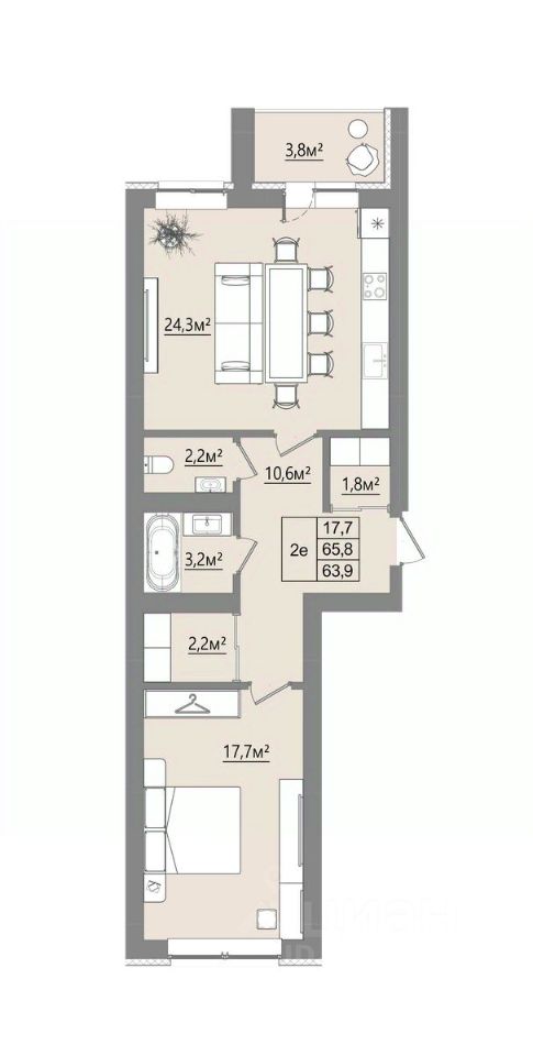 Общая площадь63,9 м²