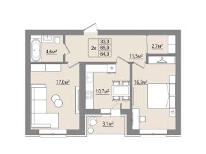 Продаётся 2-комнатная квартира в строящемся доме (Дом 1), срок сдачи: I-кв. 2027, общей площадью 64.35 кв.м., на 3 этаже. Новый жилой комплекс "Микрорайон Благодатный" от Специализированного застройщика "ВИТ-СТРОЙ" расположен по адресу: Воронежская обл., с. Ямное, по ул. Графа Орлова.