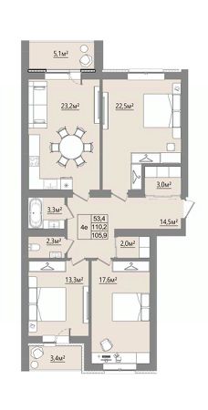 Продаётся 3-комнатная квартира в строящемся доме (Дом 1), срок сдачи: I-кв. 2027, общей площадью 105.9 кв.м., на 1 этаже. Новый жилой комплекс "Микрорайон Благодатный" от Специализированного застройщика "ВИТ-СТРОЙ" расположен по адресу: Воронежская обл., с. Ямное, по ул. Графа Орлова.