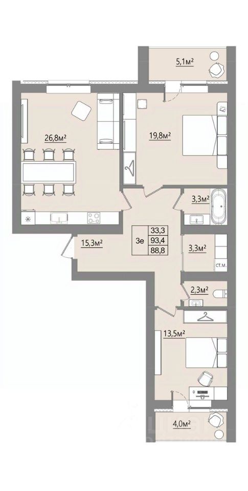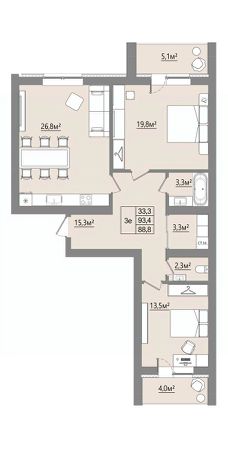 Продаётся 2-комнатная квартира в строящемся доме (Дом 1), срок сдачи: I-кв. 2027, общей площадью 88.85 кв.м., на 3 этаже. Новый жилой комплекс "Микрорайон Благодатный" от Специализированного застройщика "ВИТ-СТРОЙ" расположен по адресу: Воронежская обл., с. Ямное, по ул. Графа Орлова.