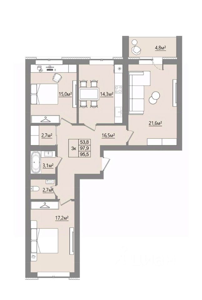 Продаётся 3-комнатная квартира в строящемся доме (Дом 1), срок сдачи: I-кв. 2027, общей площадью 95.5 кв.м., на 4 этаже. Новый жилой комплекс "Микрорайон Благодатный" от Специализированного застройщика "ВИТ-СТРОЙ" расположен по адресу: Воронежская обл., с. Ямное, по ул. Графа Орлова.