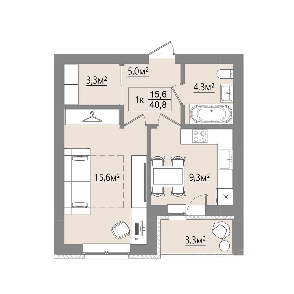 Жилая площадь15,6 м²