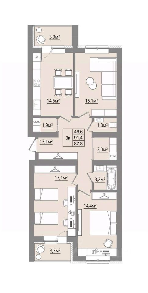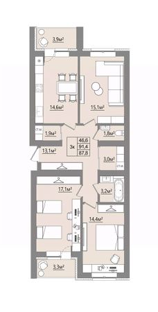 Продаётся 3-комнатная квартира в строящемся доме (Дом 1), срок сдачи: I-кв. 2027, общей площадью 87.8 кв.м., на 4 этаже. Новый жилой комплекс "Микрорайон Благодатный" от Специализированного застройщика "ВИТ-СТРОЙ" расположен по адресу: Воронежская обл., с. Ямное, по ул. Графа Орлова.